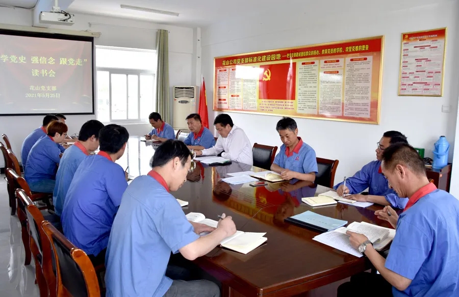 5月25日下午,花山公司党支部第一党小组召开“学党史、强信念、跟党走”读书会,星空·官方站网页版在线登入党委书记、董事长吴福胜以党小组普通党员身份参加。花山党支部委员、领导班子成员受邀参加并分享党史学习体会。